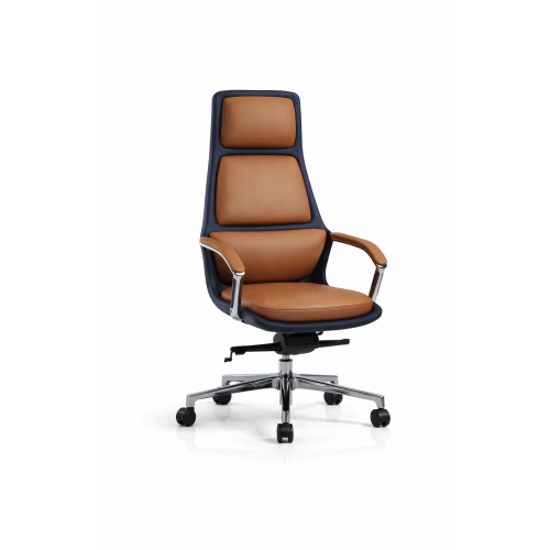This chair features premium leatherette upholstery with soft padded sections that enhance comfort and posture. The stylish dual-tone design gives the chair a luxurious executive appearance suitable for professional workspaces.