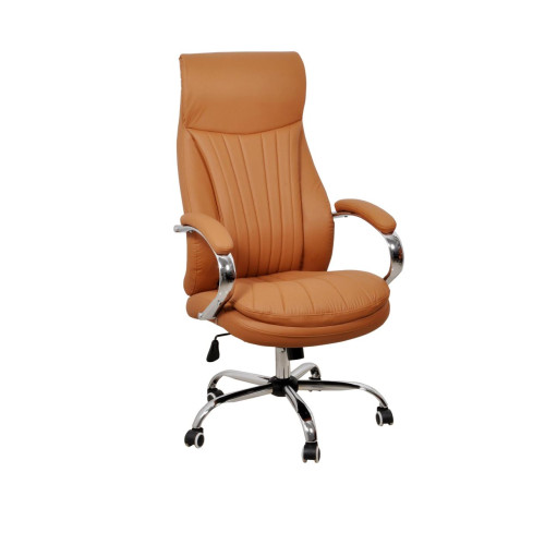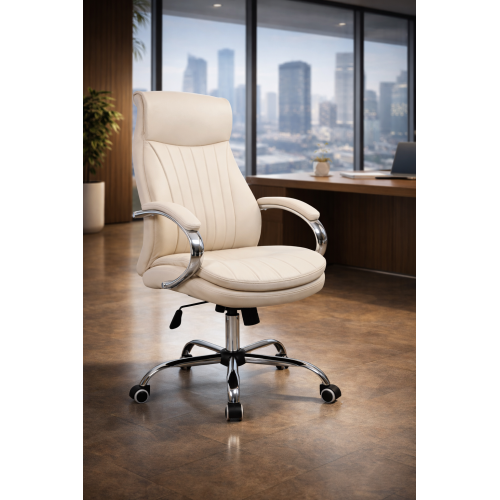 This chair features premium leatherette upholstery with vertical stitched cushioning that enhances both comfort and style. The thick padded seat and backrest ensure superior seating comfort while maintaining a professional executive appearance.